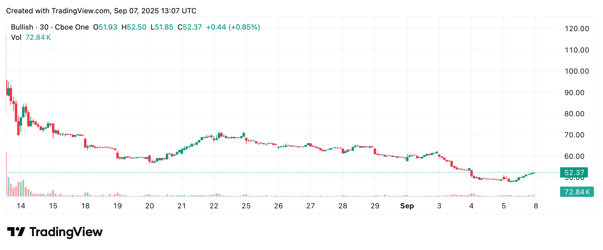 Bullish, after its dazzling debut-a captivating narrative bold enough for the markets to applaud, only to recoil 17.43% weekly and 41.83% monthly. Metaplanet falters 21.57% in a week, 24.01% in a month. Trump Media & Technology Group, rough with a 6.55% weekly retreat, albeit a strange 1.96% monthly gain-plot twist!
