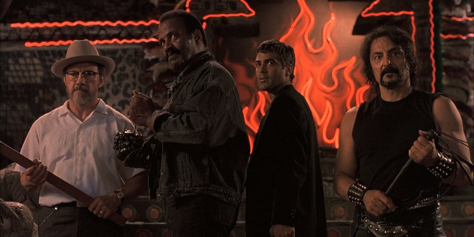 In Robert Rodriguez’s film “From Dusk till Dawn,” we follow the story of brothers Seth (George Clooney) and Richie Gecko (Tarantino), two wanted criminals aiming to make their escape into Mexico. They took Pastor Jacob Fuller (Harvey Keitel) and his children, Kate (Juliette Lewis) and Scott (Ernest Liu), hostage at an inn before compelling them to help smuggle them across the border. Upon reaching Mexico, they paused at a desert strip club where the Gecko brothers were due to meet their contact at sunrise. This person would then guide them to a safe haven for fugitives.