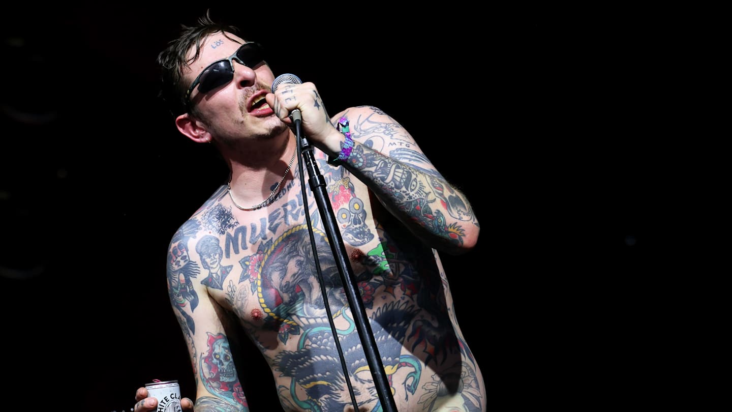 Viagra Boys frontman Sebastian Murphy opened his scathing critique of modern society, the song “Troglodyte” from their 2023 album *Cave World*, by saying, “I can’t believe we’ve made it this far without getting deported.”