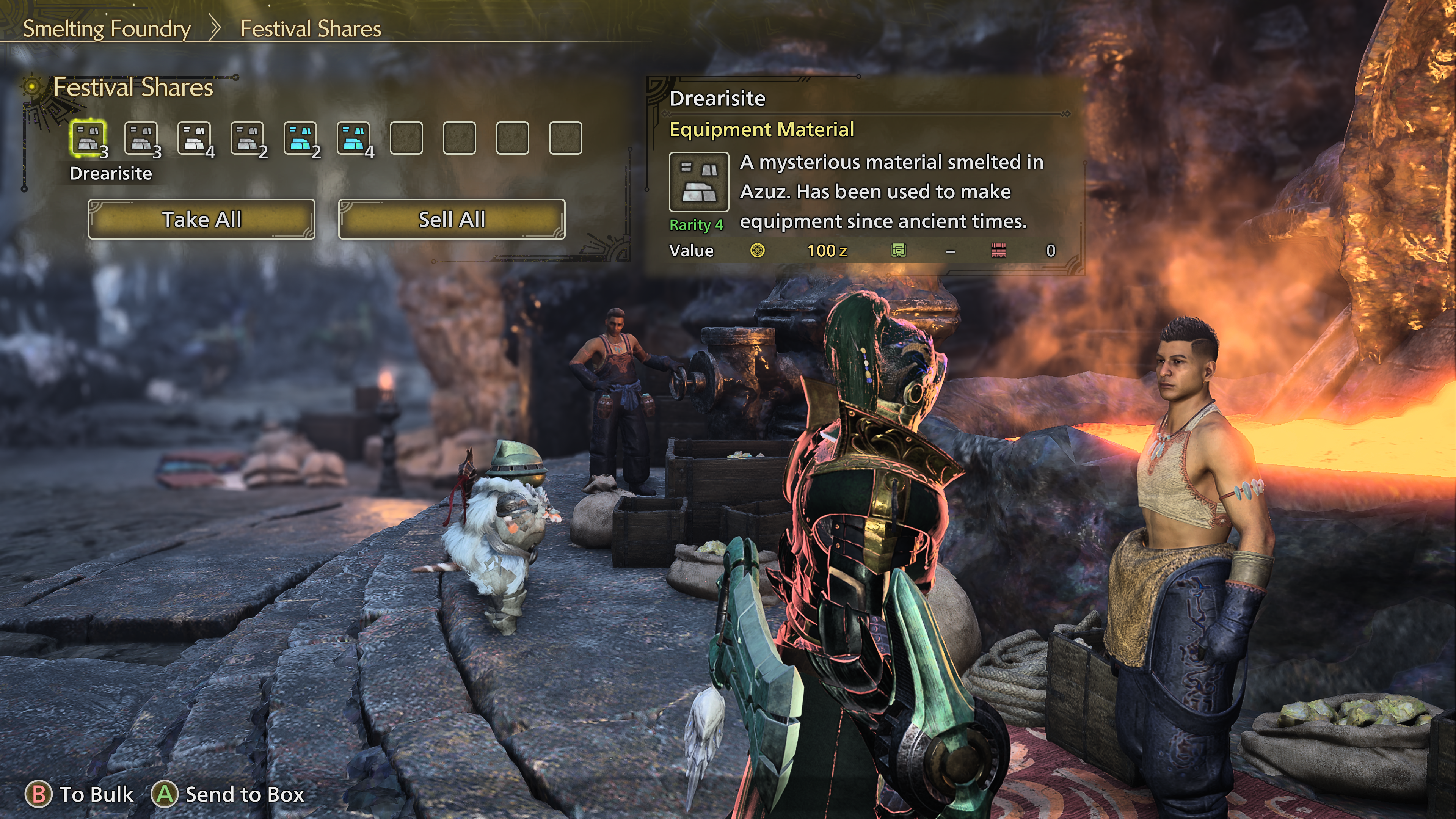At the Oilwell Basin’s Smelting Foundry, there’s a unique offering called Festival Shares. Similar to other game vendors’ Item Retrieval systems, it provides exclusive mining materials as rewards for your gear. Unlike others, this service concentrates on rare ores. Over time in the game, the vendor at the Smelting Foundry accumulates more ores that you can collect. You’ll be informed when their shares are full, but you can also claim rewards before they fill up completely.