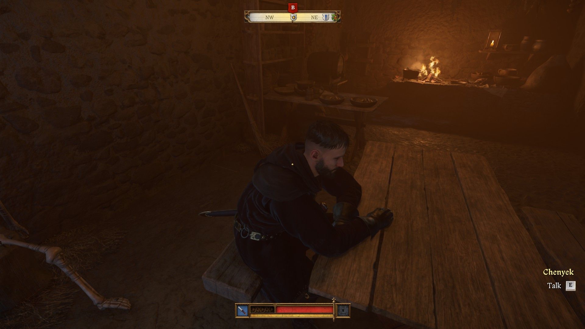 Katherine instructs you to make your way to a tavern called “Hole in the Wall,” situated on the city’s southeastern side. Upon arrival, the bouncer will expect you to prove yourself to a man named Chenyek. Once inside, find Chenyek seated at one of the tables. You have two options: either confront him aggressively (Intimidate), or offer him 200 Groschen. If you don’t, he may challenge you to fight Goliath in the back instead.