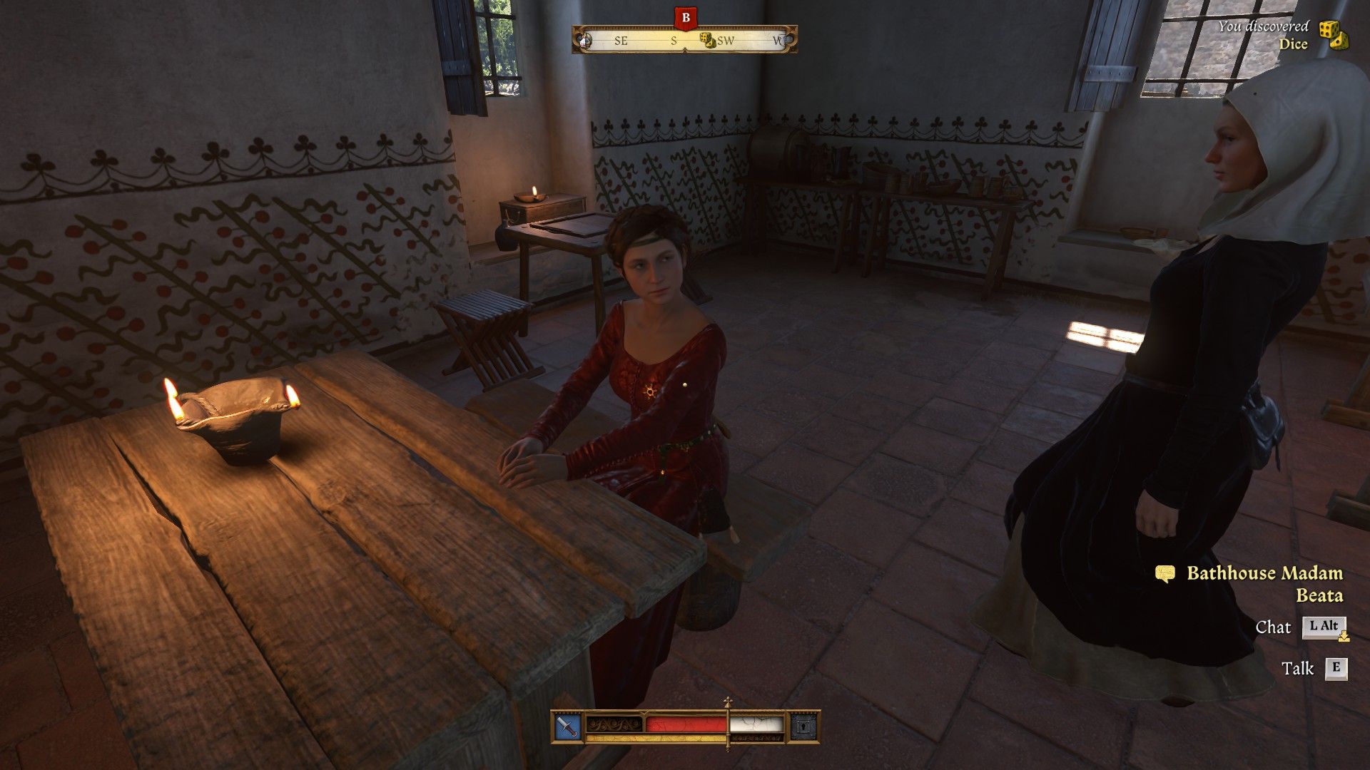 Following his victory, Chenyek will share with you that Goatskin has ceased visiting the tavern and was allegedly attacked by some rough individuals. If you’re eager to locate him swiftly, approach Madam Beata at the Public Bathhouse. Inquire about Goatskin from her, and she’ll disclose that he’s known for pilfering wealthier Germans. Madam Beata will also inform you of a certain man named Udo, who can be found at the City Bathhouse in the evening hours.