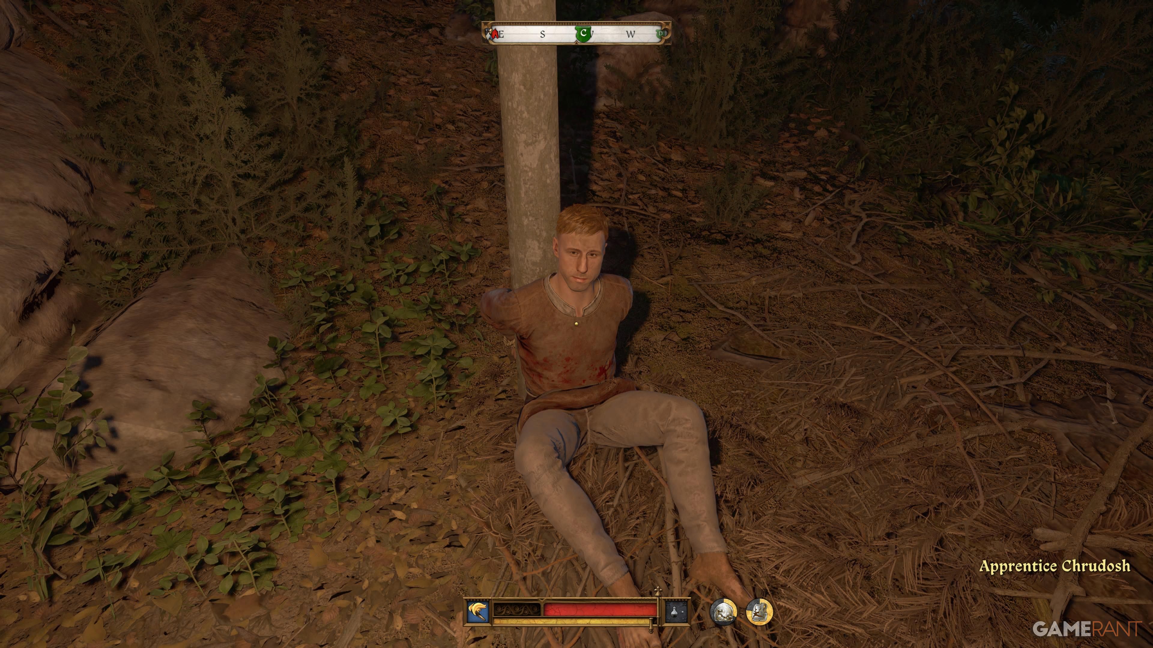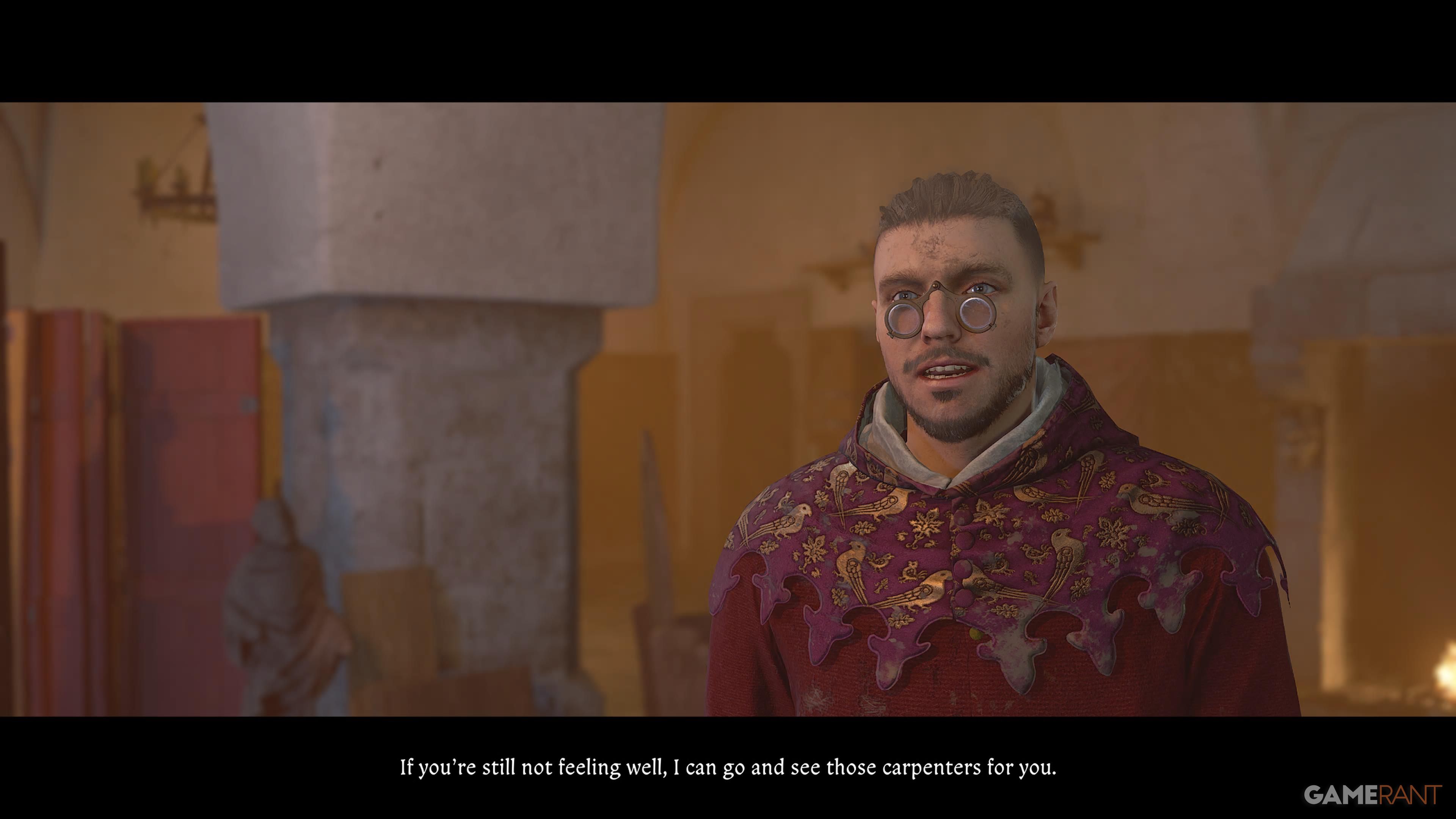 Following the acquisition of the statuette, it’s your mission to liberate Chrudosh. Engage in conversation with him, ensuring that you’ve explored all his dialogue options. Afterward, make your way back to Kuttenberg City and seek out Journeyman Stilhau, who can be found near the carpenter’s shop. Remember to chat with him extensively as well. By doing so, you’ll receive some Groschen and unlock the “All Fun and Games” trophy/achievement.