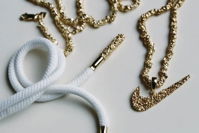 Fashion professional Veneda Carter, known for her work as a celebrity stylist and jewelry designer, is set to unveil two Nike collaborations in the near future. A sneak peek of this partnership was recently shared on Instagram through an enigmatic image showcasing a gold chain adorned with the iconic Swoosh logo, white laces, and matching gold eyelets, all sporting Carter’s signature “Gem Stone” accents. This post follows another one where she donned a pair of white Air Max Craze shoes, sparking speculations about the collaboration. The upcoming designs are rumored to include two pairs of Muses in colorways “White/Hyper Pink/Cargo Khaki” and “White/Racer Blue/Bright Crimson.” Keep an eye out for the official release date.