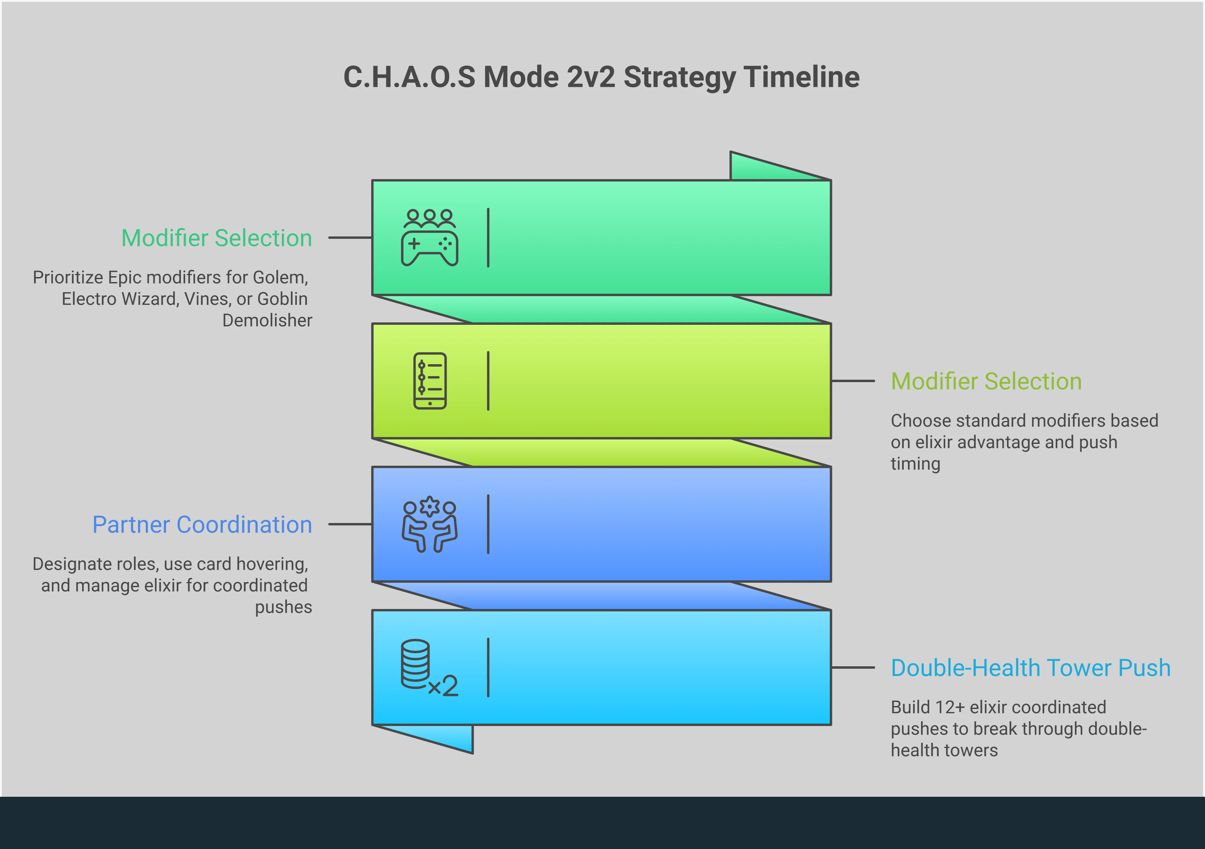 Want to win in C.H.A.O.S mode? It might seem random, but having a good plan is crucial. It’s not about getting lucky with your starting cards, but how well you handle everything that happens during the battle. To succeed, focus on three things: quickly adjusting to the random effects, knowing how to respond to your opponent’s moves, and coordinating with your teammate to use elixir wisely. Let’s explore how to improve these skills and start winning more games.