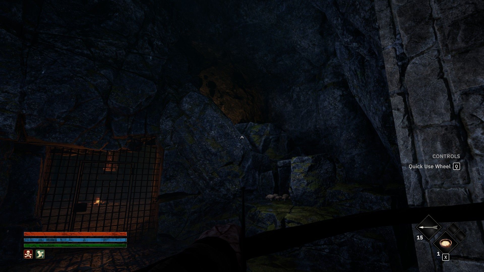 A superior strategy for dealing with him involves climbing the ledge on his right side and raining down arrows and spells. Given his low health, your initial skill selection won’t significantly impact the outcome. You’ll have plenty of ammunition, as there are 15 arrows waiting at the corpse near Caradoc, which should be sufficient to defeat him.