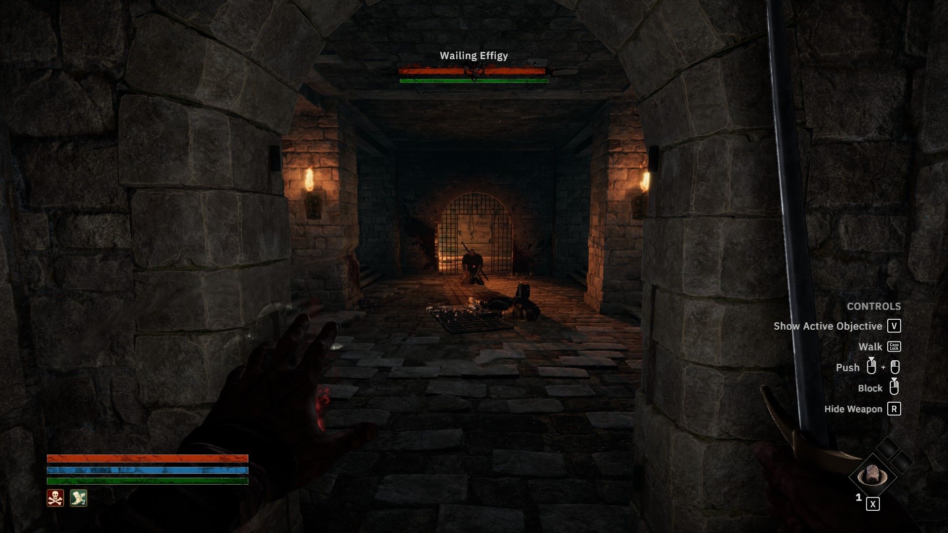 Upon defeat, the Wailing Effigy will discard the Heavily Mournful Armor and a Common Broadsword. The former offers additional Max health by 5 and 2.0 points of Armor, maintaining a light weight of just 2.5 units of Load. The latter isn’t particularly remarkable.