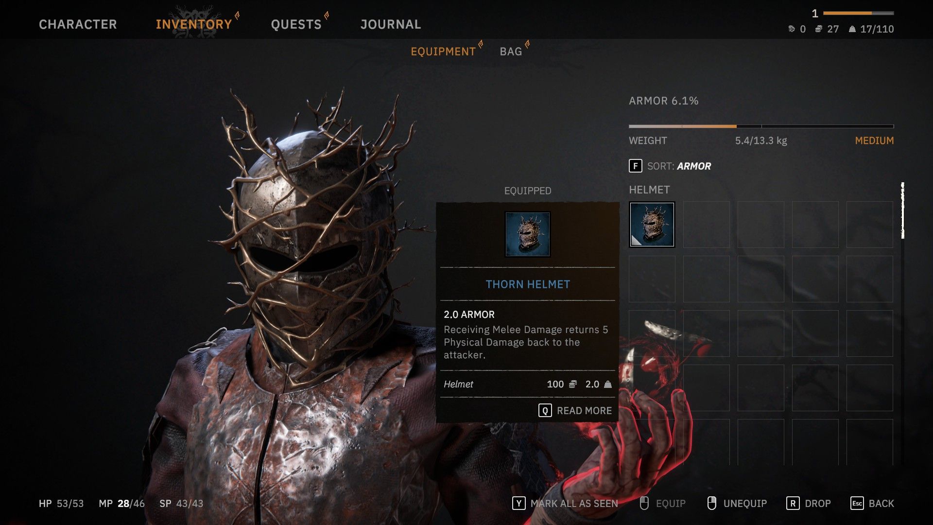 After it dies, the Frenzied Warrior will leave behind the Thorn Helmet, an item that mirrors 5 points of Physical Damage back to melee assailants when you are struck. Additionally, it will drop Athlete’s Pride, a ring that boosts your Maximum Stamina by 5.