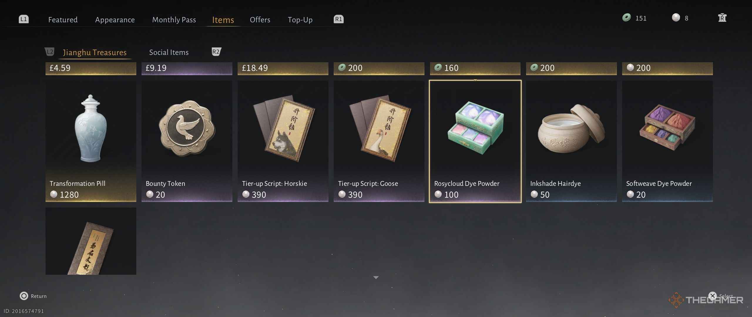| Rosycloud Dye Powder | Dyeing clothes | 100 Echo Beads per item in the shop, but also from draws and other locations viewable from the item’s tooltips |