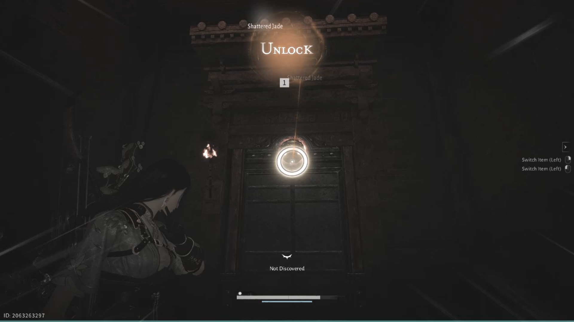 Ahead, you’ll find a lock requiring a lever, bell, and Meridian’s Touch. Beyond that is a room with the fourth weapon and a shielded enemy. Defeat the enemy, grab the weapon, and proceed carefully to the next dangerous gap.