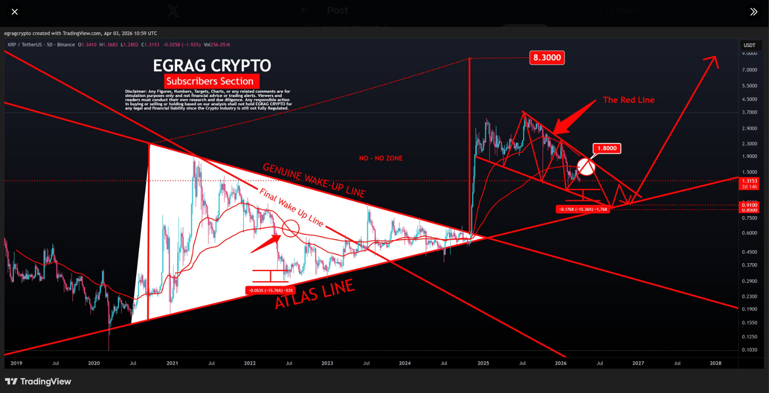 Bottom target: crystal clear →…— EGRAG CRYPTO (@egragcrypto) April 3, 2026