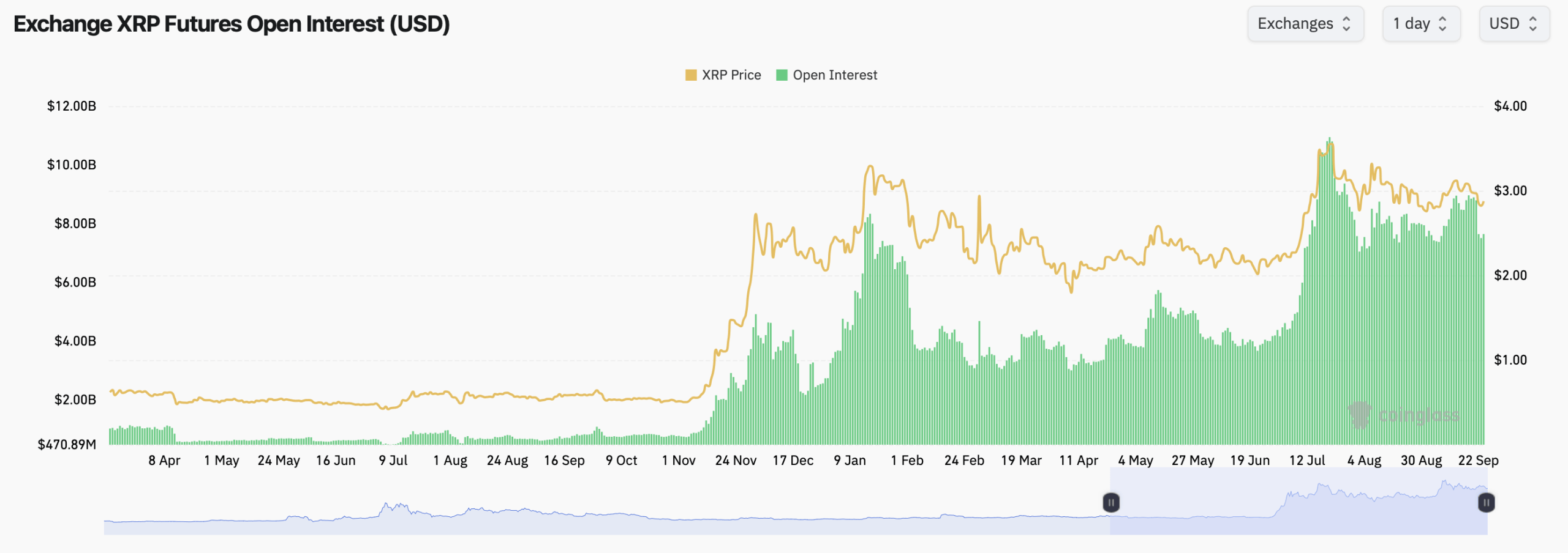 Letās talk futures, shall we? Total open interest (OI) is sittinā pretty at $7.64 billion across them venues, which is about 2.66 billion XRP notionally. Them folks over at Coinglass.com say Bitgetās got the biggest slice of the pie, with CME, Binance, and Bybit right behind, each holdinā over $1 billion in OI. Thatās more money than a politicianās promises! š¼šø